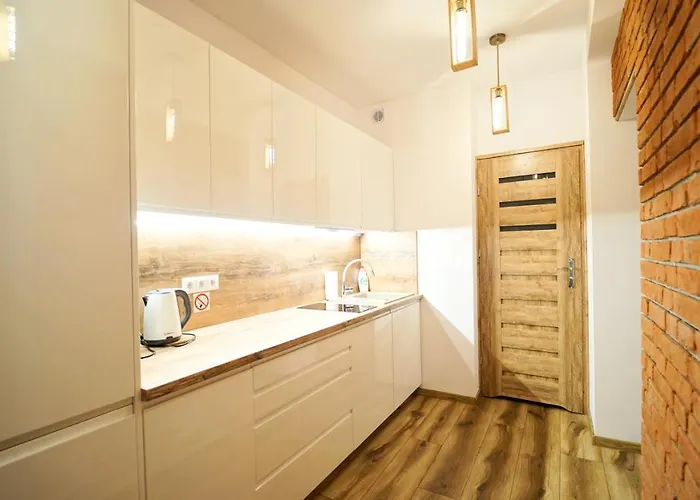 Apartamenty Everysky - Saneczkowa 3靠近Swiat Kolejek,距离卡尔帕奇市中心仅有25分钟路程. 公寓可以提供自己做饭的设施服务,小厨房配备电热水壶 和炉子.